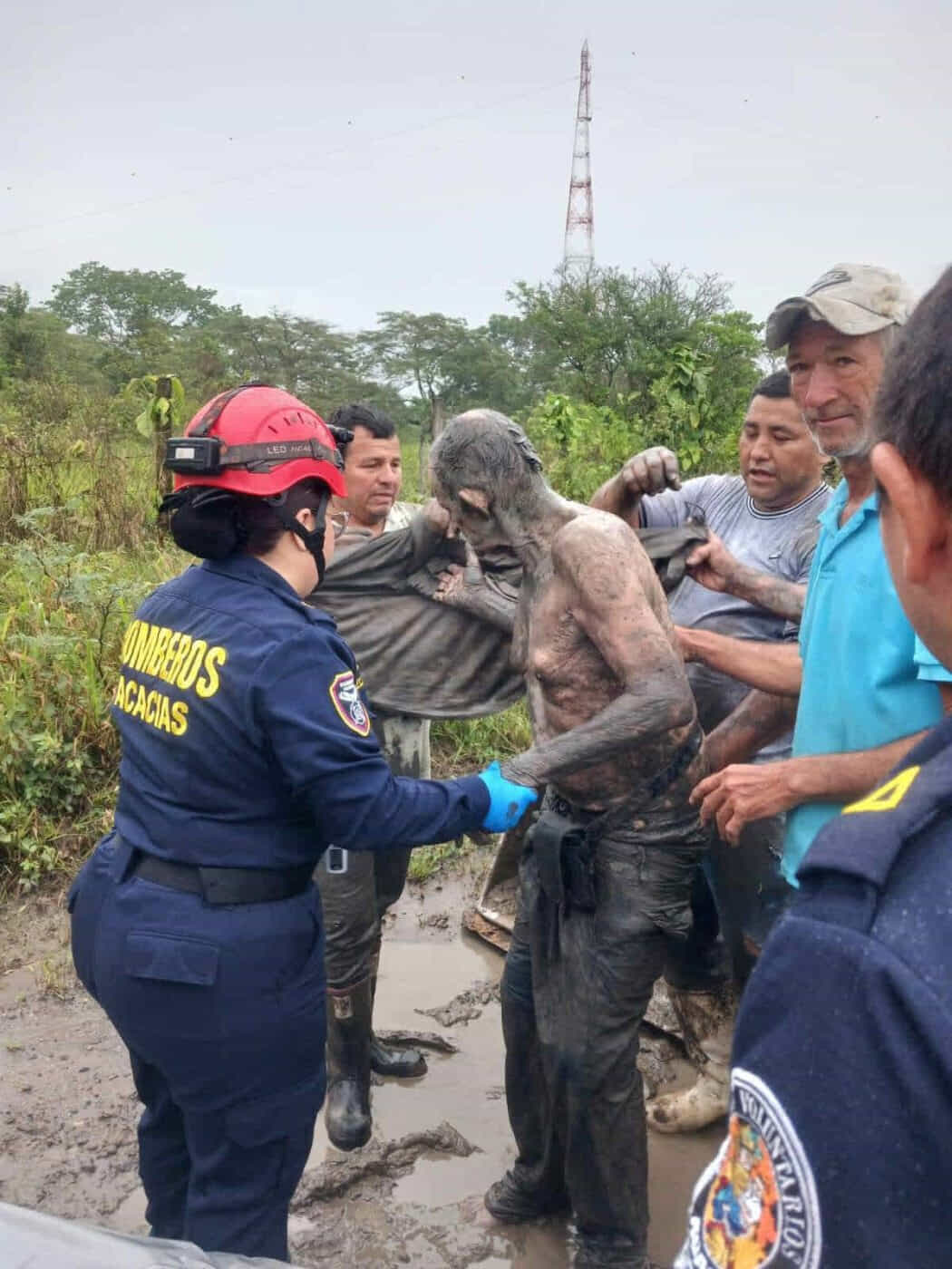 Al lugar del rescate llegaron unidades de Bomberos voluntarios quiénes lo trasladaron de urgencias al hospital local, debido a que el señor Drigelio soportó por el término de 16 horas bajo la inclemente lluvia y frío entre el lodazal.