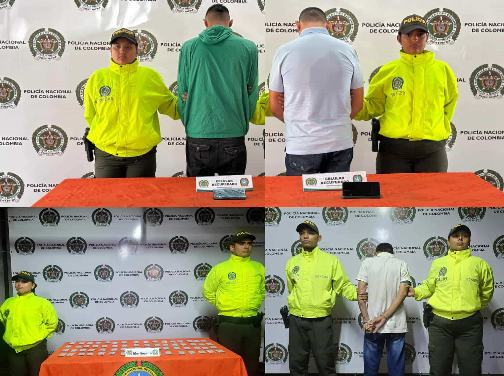 Los capturados y elementos incautados fueron dejados a disposición de la Fiscalía General de la Nación.