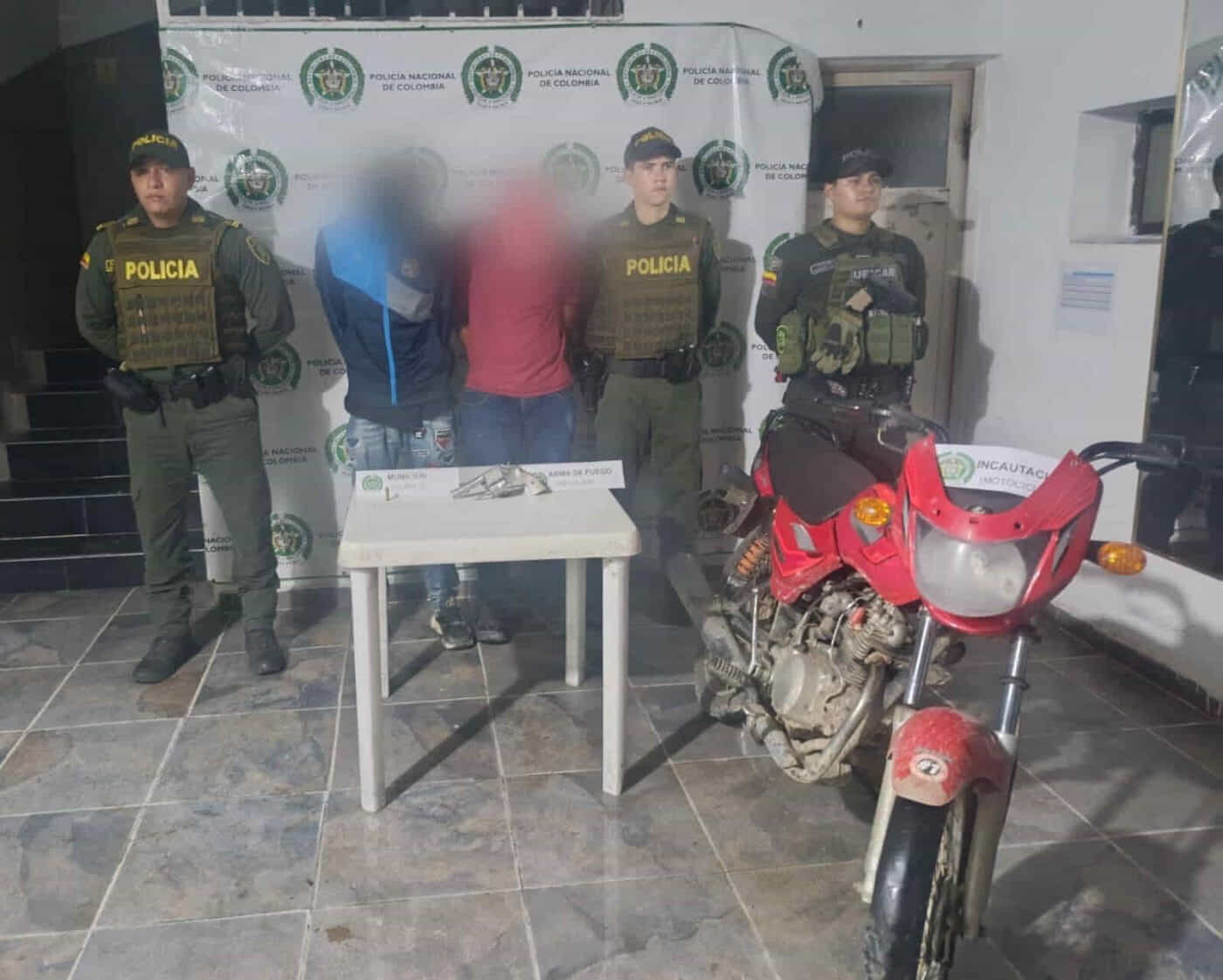 Los hechos ocurrieron en la calle 12 con carrera 10 del barrio Popular, jurisdicción del municipio de Granada, luego de que los efectivos del Nuevo Modelo del Servicio de Policía, requieren a estos sujetos cuando se movilizaban en una motocicleta, al practicarles un registro les fue hallado en su poder un arma de fuego tipo revólver calibre 38 con un cartucho para la misma.
