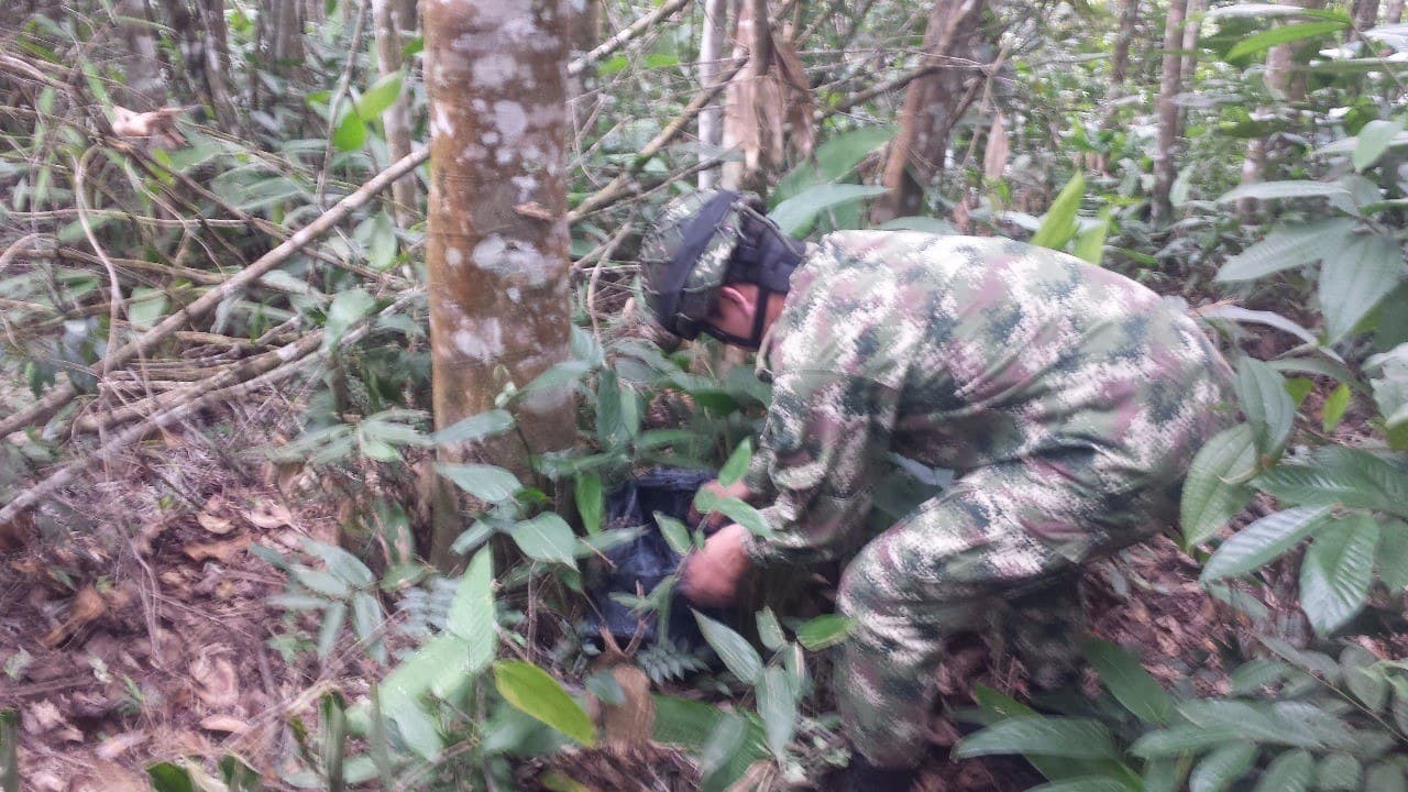 Tropas del Batallón de Ingenieros No. 51 de Construcción Sebastián Martínez, de la Séptima Brigada, en la vereda ‘La Libertad’, zona rural del municipio de Mesetas, Meta, mediante labores de inteligencia suministrada por fuente humana, lograron la ubicación y destrucción de un depósito ilegal perteneciente a integrantes del Grupo Armado Organizado de las disidencias del Frente 40.