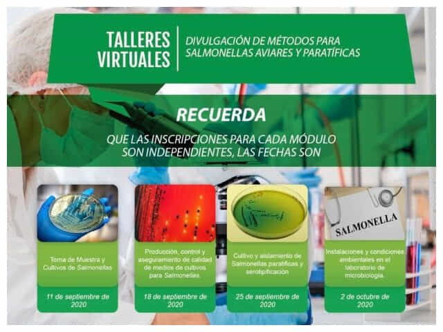 Durante el primer módulo se destacó la importancia de tener instalaciones adecuadas, con temperaturas ideales para que las tomas de muestras, cultivo y aislamiento de salmonelosis aviar sean exitosas; mientras que en el segundo módulo se explicó la producción, el control y el aseguramiento de calidad de medios de cultivo para salmonelosis aviar y paratíficas.