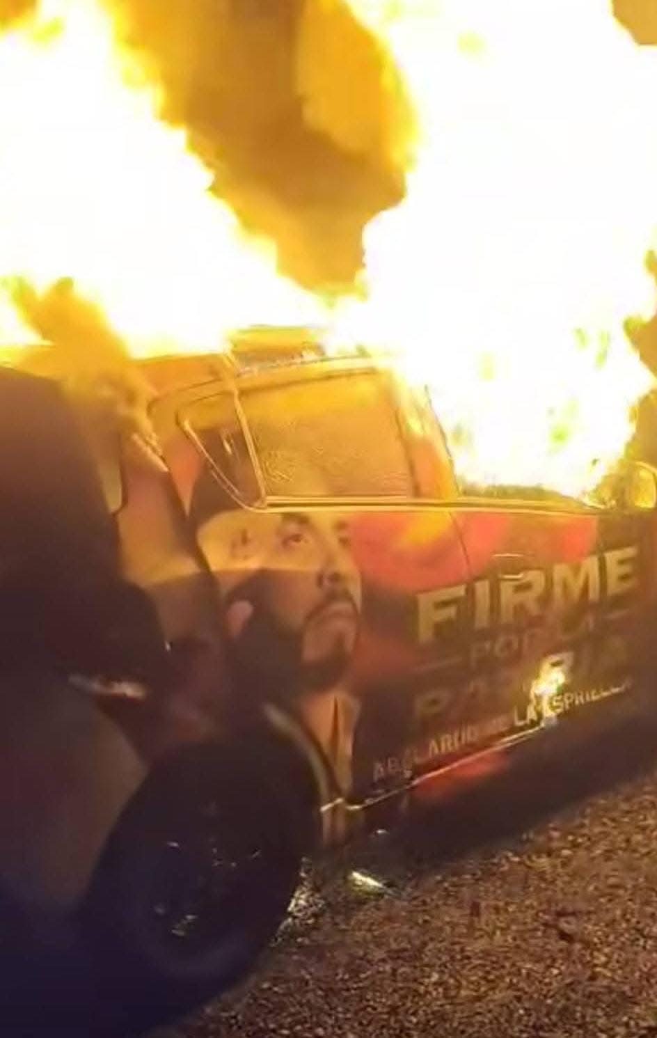 De acuerdo con las primeras informaciones, los atacantes interceptaron el automóvil, obligaron a los ocupantes a descender y procedieron a prenderle fuego. El vehículo, que llevaba publicidad alusiva a la campaña de De la Espriella quedó completamente destruido.
