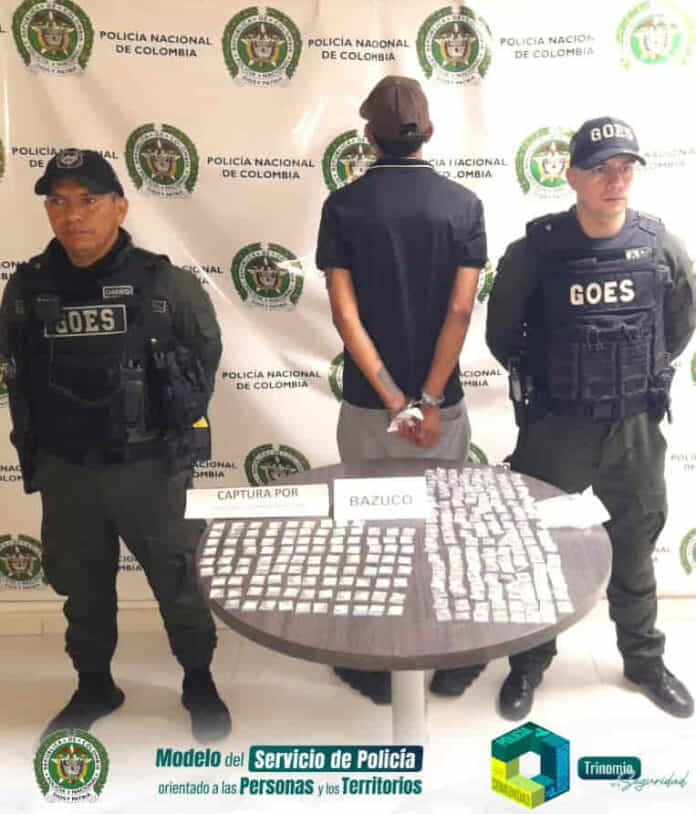 Los planes de prevención y control adelantados en el sector de La Madrid de Villavicencio, permitieron que uniformados del Grupo de Operaciones Especiales capturaran en flagrancia a un hombre de 24 años en la segunda etapa de este sector, quien fue sorprendido con 250 dosis de base de coca (Bazuco), avaluadas en $700.000.