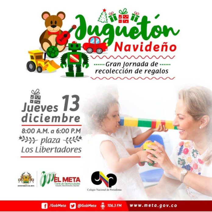 Este jueves 13 de diciembre, a partir de las 8:00 de la mañana y hasta la 6:00 de la tarde, el Gobierno de las Oportunidades llevará a cabo en la plaza Los Libertadores de Villavicencio el ‘Juguetón’ navideño, por los niños y niñas del departamento.