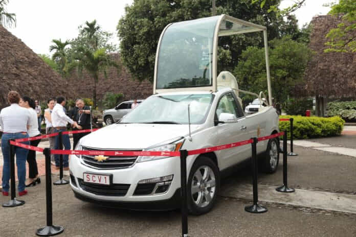 En el parque Las Malocas de Villavicencio, monseñor Óscar Urbina entregó oficialmente a la gobernadora Marcela Amaya el vehículo en el que se movilizó el Santo Padre durante su visita a la capital del Meta en el año 2017, y que desde ahora hará parte de los atractivos del Museo Maloca Papa Francisco