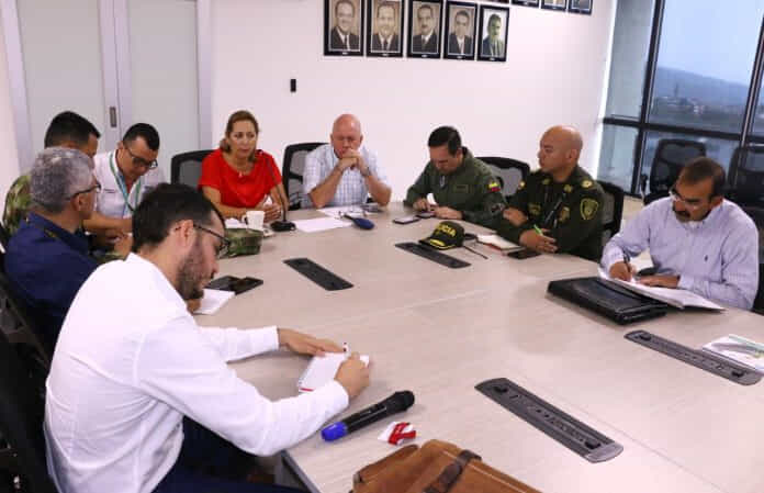 La gobernadora Marcela Amaya en compañía de Gerardo León Mancera, secretario de Gobierno del Meta, en el séptimo piso de la administración departamental lideran un consejo de seguridad con el fin de presentar las estrategias y medidas para garantizar la movilidad y seguridad de los metenses durante el transcurso de Expomalocas 2019 ‘Somos potencia’ y el Campeonato Nacional de ruta, que se cumplirán del 31 de enero al 3 de febrero.