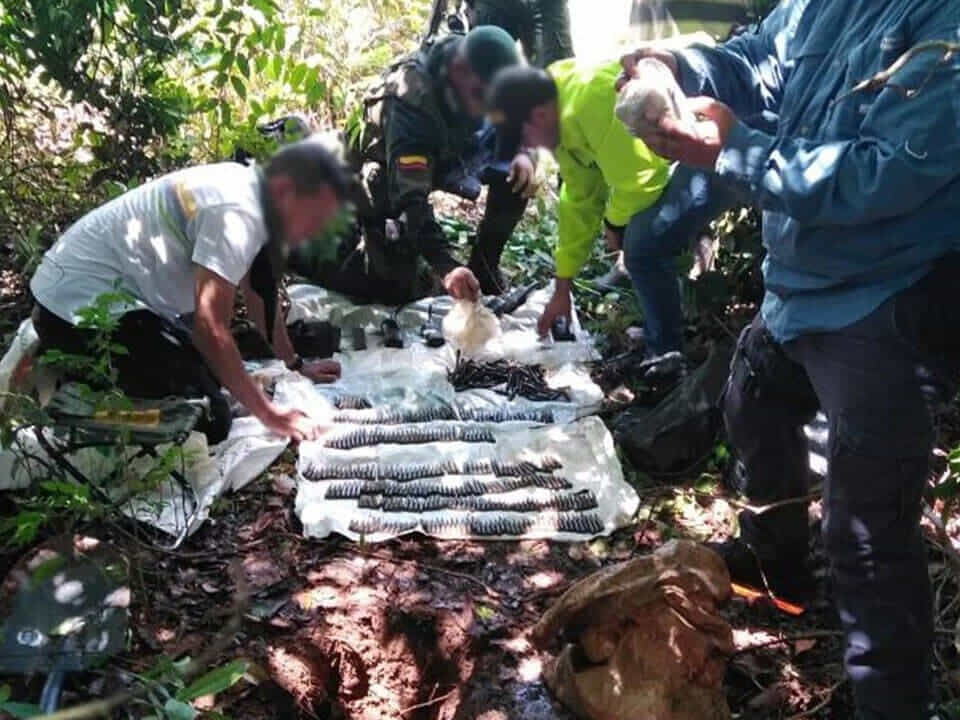 Este material estaba escondido dentro de una caneca plástica enterrada en una zona boscosa, a unos 200 metros de una vía terciaria, para apoyar los planes criminales de la estructura criminal, ejercidos a través del homicidio y extorsiones a los comerciantes, agricultores y transportadores en los municipios de Granada, San Martín y San Carlos de Guaroa.