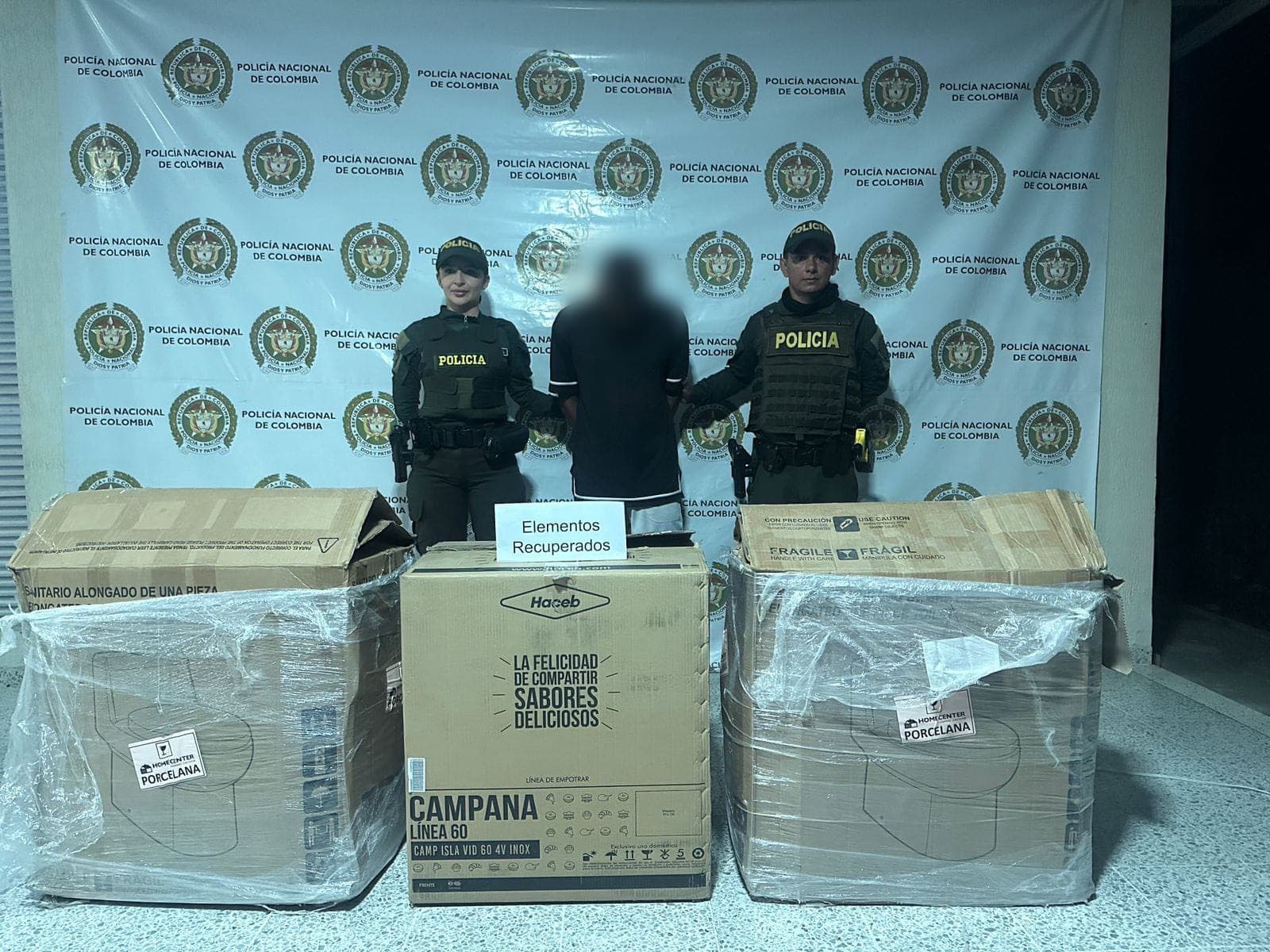 En la vereda Santa Barbara del municipio de Guamal, Meta, la Policía Nacional atendiendo un llamado de emergencia de la comunidad, logró capturar en flagrancia durante las últimas horas a un hombre quien habría ingresado a una vivienda donde sustrajo varios elementos y enceres domésticos avaluados en aproximadamente $4’500.000.