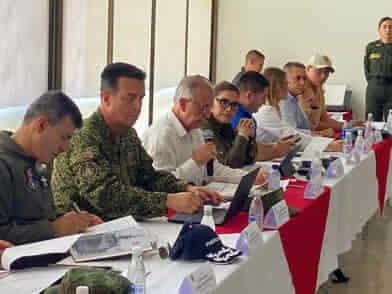 *Granada, Meta.* Desde el municipio de Granada en el departamento del Meta, el doctor Iván Velásquez Gómez, ministro de defensa nacional, acompañado por los altos mandos de las Fuerzas Militares y de la Policía Nacional, se reunió con los gobernadores de Meta y Guaviare, así como algunos Alcaldes de estos departamentos, para adelantar un Consejo de Seguridad Ministerial, y así, tratar temas de interés relacionados con la seguridad en estas jurisdicciones.